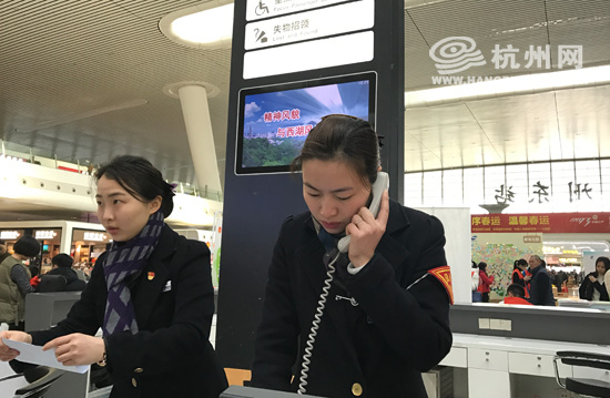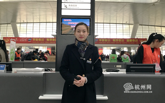 杭州網訊1月16日是春運的第四天,杭州兩大火車站預計發送旅客18萬人,其中杭州東站發送13.4萬人。在忙碌春運期間,一群90后的女生已經成為了火車東站奮斗在一線的新力量,她們用自己的青春與活力服務在春運的“臺前幕后”。