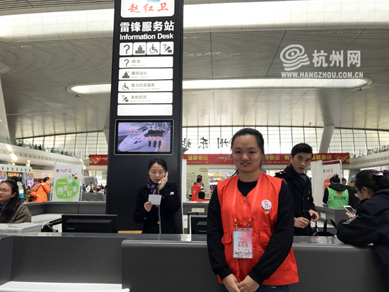 中午11點30分,記者來到趙紅衛服務臺,志愿者還在耐心回答旅客的問題,對他們而言是沒有飯點的,作為他們其中的一員,96年出生的徐子晴還在讀大三,這是她在杭州火車東站服務的第三個年頭。
