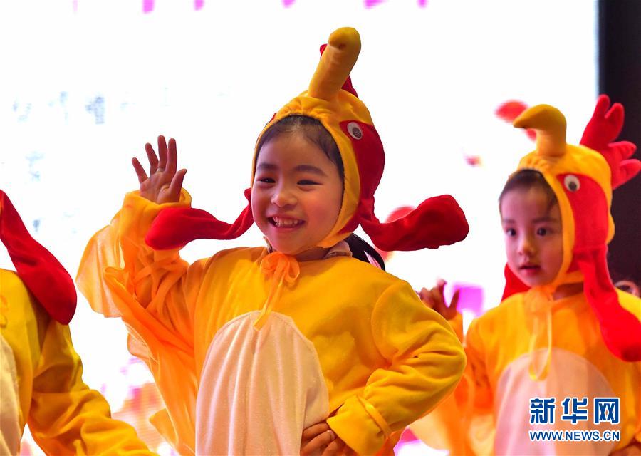 1月20日晚,小朋友在舞臺上表演舞蹈《小雞咯咯》。當晚,一場少兒新年音樂會在廣西南寧市東葛路舉行,小朋友們在歌舞中迎接即將來臨的雞年。 新華社記者 黃孝邦 攝