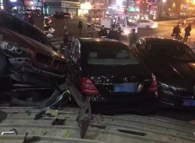 昨天晚上11點多,不少人的朋友圈被一起多輛豪車相撞的消息刷屏了。從圖片上看,發(fā)生碰撞的車傷得不輕,兩個大奔兩個寶馬,其中暗紅色寶馬越野車的前保險杠整個掉了下來!