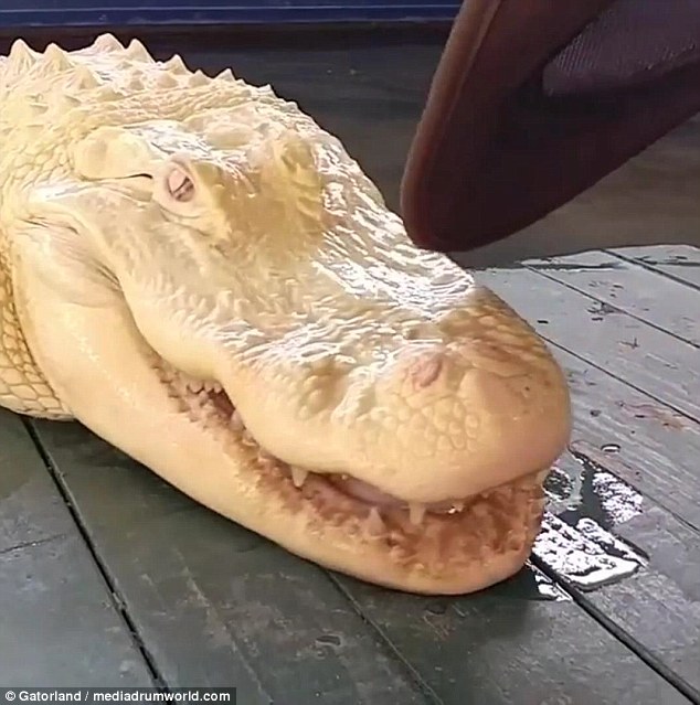 據(jù)英國(guó)《每日郵報(bào)》1月23日?qǐng)?bào)道,在美國(guó)奧蘭多的一家專門救治鱷魚的主題公園內(nèi)有一條特殊的鱷魚“珍珠”,它因患上白化病導(dǎo)致色素缺失,有著白色的外表和粉紅色的眼睛,據(jù)工作人員介紹,“珍珠”今年已經(jīng)10歲,長(zhǎng)2.3米重95斤。編譯/余詩(shī)泉(參考消息網(wǎng)獨(dú)家編譯,轉(zhuǎn)載請(qǐng)注明出處)