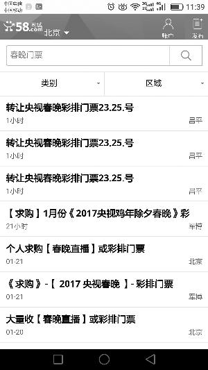 昨天,記者在58同城、閑魚等多家網絡平臺上看到有人出售春晚彩排門票。在趕集網上搜索“春晚彩排門票”,頁面上會跳出六七條相關帖子。其中一則“轉讓央視春晚彩排門票”的帖子,提示當紅明星鹿晗、張藝興彩排等信息,標注的價格為3500元。