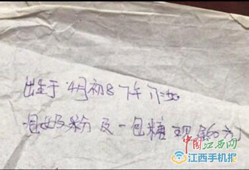 “出生于4月初8下午17:50,一包奶粉及一包糖,現金60元!2005年5月16日清晨,躺在襁褓中的女嬰被家人遺棄在江西上高縣公安局大門旁,身上留有這樣的一張紙條,這還是她來到世界的第二天。