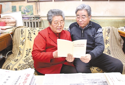 林秀貞和老伴在家中讀書。 焦明瑞攝