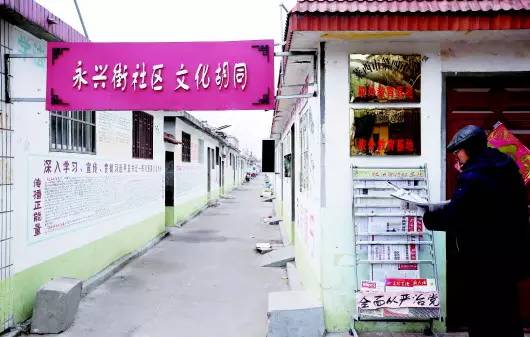 2016年12月13日上午,記者來到了萊西市水集街道的永興街社區。老舊的居民樓中間的一條小巷,出現一個紅色的牌子,文化胡同,就是這了。小巷長度100多米,兩側墻壁上全是老人的作品,手繪的宣傳畫、手制的宣傳欄、道德文明標語、國家大政方針政策等,鋪滿了兩面墻壁。更多的內容則是宣傳青少年安全教育、道德文化教育,以及遵法守法、誠信友善宣傳等,像是印在墻上的“教育小百科”。