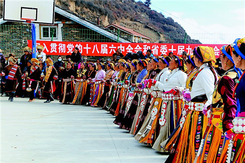 黑水縣群眾跳起鍋莊,歡慶新春佳節。 胡偉 攝