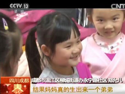 記者:你媽媽給你生小寶寶的時候,有沒有說寶寶我再給你生個弟弟妹妹你愿不愿意啊?