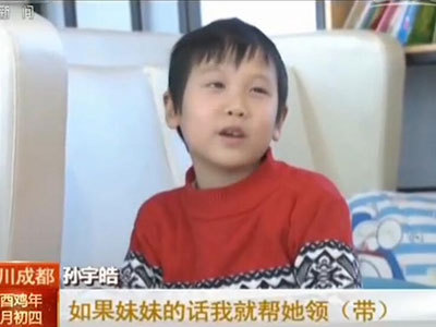 記者:現在會幫著媽媽照顧妹妹嗎?