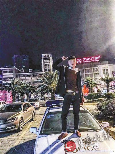 原標(biāo)題:爬上警車擺造型 無業(yè)小伙遭拘留