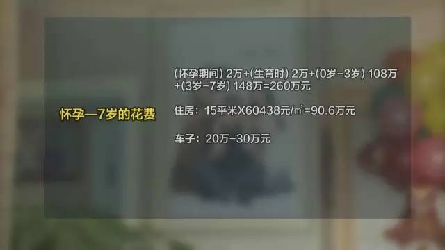 這樣算下來,從懷孕到二寶蘭熙7歲幼兒園畢業,張亞英一家需要付出的費用大約是260萬元,而這還是在車子、房子都已經提前解決的情況下,如果沒有解決,至少還要多付出一百多萬元。