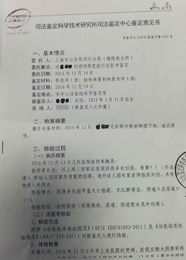 他4歲的女兒優(yōu)優(yōu)(化名)在上海閔行區(qū)曉苗幼兒園讀中班,去年12月給女兒洗澡時(shí)發(fā)現(xiàn),女兒有多處掐傷、抓傷痕跡。經(jīng)詢問(wèn),孩子稱傷痕是幼兒園朱老師(女)造成的。家長(zhǎng)報(bào)警處理后,經(jīng)司法鑒定,優(yōu)優(yōu)會(huì)陰部確遭外力作用受傷,構(gòu)成輕微傷。