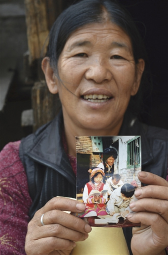 陸學(xué)英展示她與收養(yǎng)的四個(gè)孤兒的合照