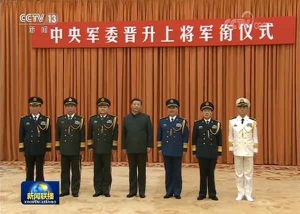 中央軍委晉升上將軍銜儀式11月2日在北京八一大樓隆重舉行。中央軍委主席習(xí)近平向晉升上將軍銜的中央軍委委員、中央軍委紀(jì)律檢查委員會(huì)書記張升民同志頒發(fā)命令狀。(央視網(wǎng))