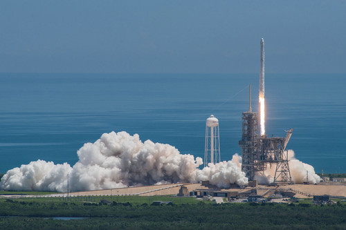 資料圖片:美國太空探索技術公司8月14日發布的照片顯示,“獵鷹9”火箭搭載“龍”飛船從美國佛羅里達州肯尼迪航天中心發射升空。新華社發