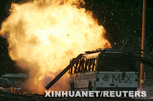 10月16日,在美國俄勒岡州波特蘭市,一枚“臟彈”在演習中被引爆。新華社/路透
