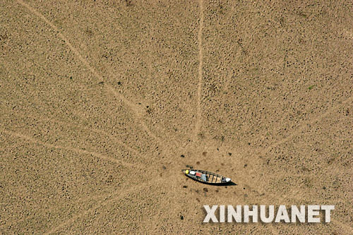 這張拍攝于2005年10月26日的照片顯示,一艘小船擱淺在巴西庫(kù)魯阿伊湖干涸的湖床上。 新華社發(fā)