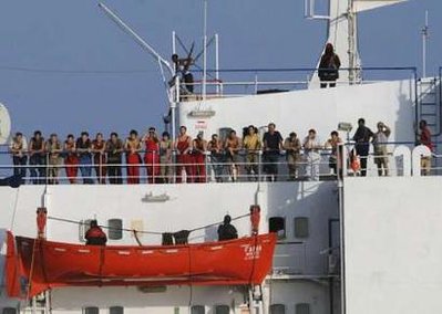 從照片來看,被劫貨船上的船員目前健康狀況良好。