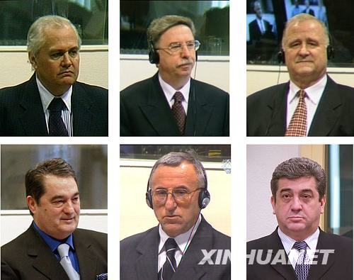 2月26日,設(shè)在荷蘭海牙的聯(lián)合國前南刑事法庭將在海牙對前南斯拉夫聯(lián)盟共和國塞爾維亞共和國總統(tǒng)米蘭·米盧蒂諾維奇等六名高級領(lǐng)導(dǎo)人做出一審判決。這是前南刑庭公布的六名受審者出庭時的資料照片,拼合照片中上排左至右為米盧蒂諾維奇、前南聯(lián)盟副總理沙伊諾維奇,前南聯(lián)盟軍隊總參謀長奧伊達尼奇,下排左至右為前南聯(lián)盟軍隊高級將領(lǐng)帕夫科維奇、扎拉雷維奇,前南聯(lián)盟警察高級將領(lǐng)盧基奇。 新華社發(fā)(前南刑庭提供)