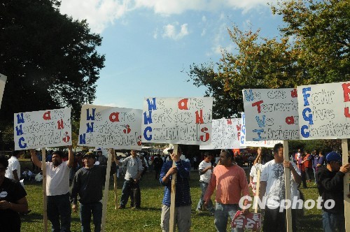 十月十三日,來自馬薩諸塞州、新罕布什爾州等的二十多個倡導(dǎo)移民改革團(tuán)體組織數(shù)千人在國會山舉行綜合移民改革大型集會。圖為集會者高舉自己制作的標(biāo)語,上面寫著“我們是工人不是罪犯”等標(biāo)語。 中新社發(fā) 吳慶才 攝