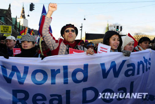 12月12日,在丹麥首都哥本哈根,游行者向聯(lián)合國氣候變化大會會場貝拉會展中心進發(fā)。新華社記者曾毅攝