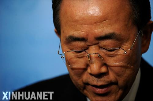1月13日,聯(lián)合國(guó)秘書(shū)長(zhǎng)潘基文在紐約聯(lián)合國(guó)總部向媒體通報(bào)聯(lián)合國(guó)人員在海地地震中的傷亡情況。新華社記者申宏攝
