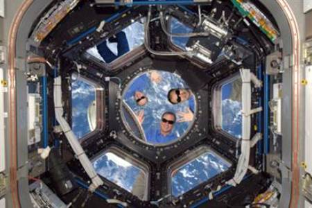 而地球上的瘋狂舉動(dòng)還感染了宇航員們。三名在國(guó)際空間站工作的航天員就在當(dāng)天擺出烏龍照片。照片中,三位宇航員穿著T恤完成了一次太空行走,他們還對(duì)鏡頭擺出招手和微笑的姿態(tài),令人驚訝不已。