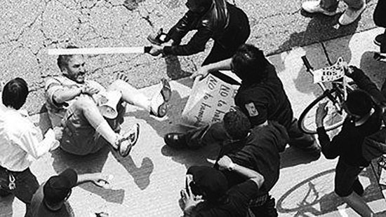 4月17日,美國(guó)白人至上主義者在洛杉磯示威游行時(shí),遭群眾討伐