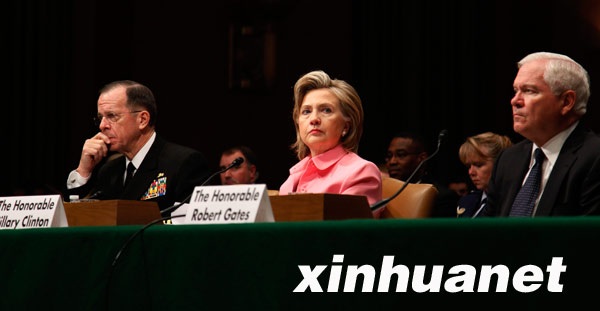 5月18日,美國國務(wù)卿希拉里·克林頓(中)出席參議院外交關(guān)系委員會就新簽訂的美俄核裁軍條約舉行的聽證會。當日,希拉里在作證時說,美國、中國和俄羅斯已就制裁伊朗的聯(lián)合國決議草案達成一致,并將于當日在聯(lián)合國安理會散發(fā)該草案。 新華社記者王豐豐攝