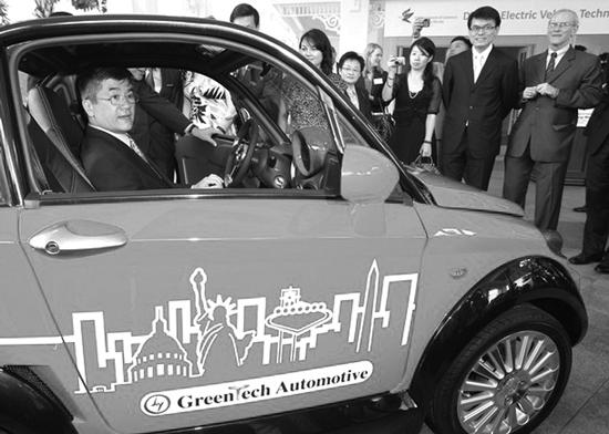 美國商務(wù)部長駱家輝(左)率代表團(tuán)訪問中國期間,參觀香港的新能源車展
