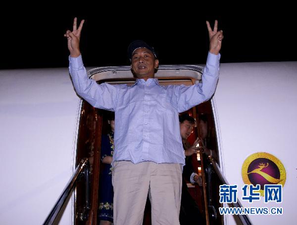 9月25日1時(shí)12分,由外交部和農(nóng)業(yè)部組成的聯(lián)合工作組已接護(hù)中國(guó)漁船船長(zhǎng)詹其雄,乘坐中國(guó)政府包機(jī)啟程回國(guó)。新華社記者陳建力攝