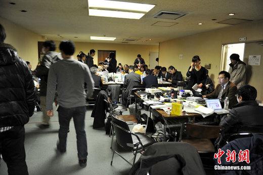 3月15日,福島縣廳里福島地震對策總部一片忙碌的景象。中新網記者 王紅綱 唐偉杰