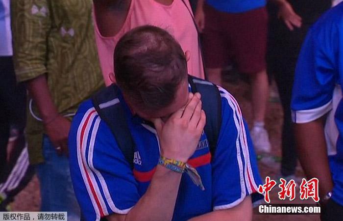 歐洲杯決賽后法國男子掩面哭泣 葡萄牙小球迷主動安慰