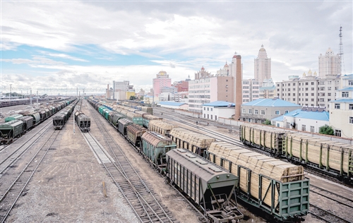 2016年上半年,滿洲里口岸過貨量完成1429萬噸,同比增長1.2%。內(nèi)蒙古地區(qū)與俄國經(jīng)貿(mào)合作水平不斷提升,內(nèi)蒙古對俄羅斯、蒙古已形成了以滿洲里、二連浩特兩大口岸為支點的沿邊經(jīng)濟走廊。新華社記者 連 振 攝