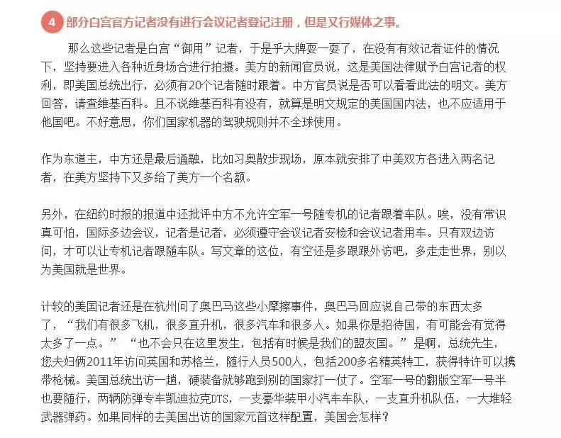 原來,所謂的“不愉快”,是因為一些美國記者不守規矩,耍大牌。