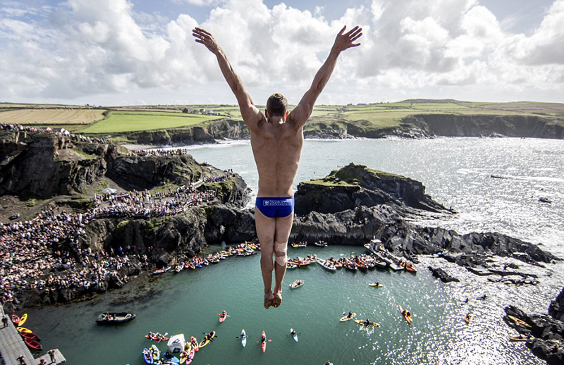 紅牛懸崖跳水走進威爾士 勇士縱身跳下27米高崖壁