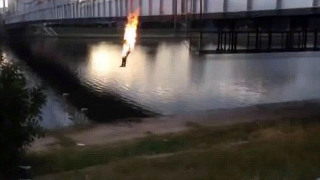 網上流傳著這兩名少年“自焚”的視頻。視頻中,一名男孩上身淋滿可燃液體,朋友用打火機在他的外套上點火,火苗瞬間燃遍男孩的上身,他立刻跳入河中。另一個視頻是從遠處拍攝的,拍到兩名少年一前一后跳入水中。
