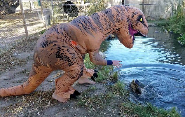 【環(huán)球網(wǎng)綜合報道】據(jù)英國《每日郵報》10月26日報道,在美國科羅拉多州的鱷魚爬行動物園,一名男管理員把自己打扮成“霸王龍”,手里還拿著一條魚戲弄水中大鱷魚,好在這條名為莫里斯(Morris)的鱷魚經(jīng)過訓練,未對該男子造成傷害。