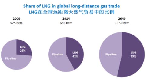 從天然氣領域來看,液化天然氣(LNG)推動了又一次天然氣革命。Tim Gloud介紹,當前,天然氣市場轉型不斷加深,LNG在全球遠距離天然氣貿易中的占比也不斷提高,到2040年這一比例將達到53%。考慮到當前LNG市場供應已經充足,澳大利亞、美國及其他新LNG出口國的加入將給相關合同條款和價格機制帶來挑戰。