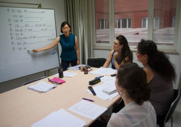 中國(guó)老師教外國(guó)人學(xué)習(xí)漢語(yǔ)拼音。(新華社發(fā))