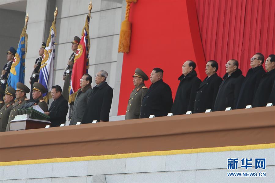 12月17日,在朝鮮平壤,朝鮮最高領導人金正恩(右六)出席中央追悼大會。當日是朝鮮已故最高領導人金正日逝世5周年紀念日,朝鮮在平壤錦繡山太陽宮舉行中央追悼大會深切悼念。新華社記者郭一娜攝