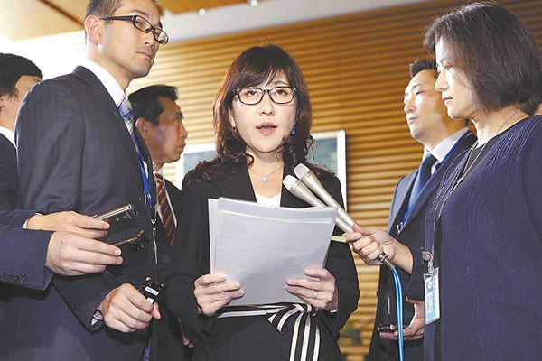 22 日,日防衛大臣稻田朋美就預算等問題接受采訪。