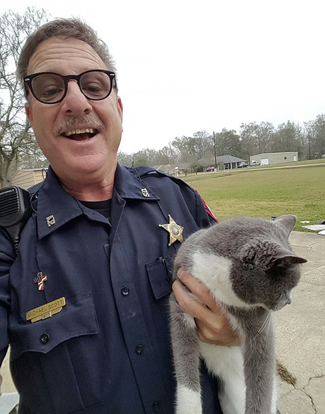 【環球網綜合報道】貓是一種靈活的動物,善于攀爬跳躍,人們時常可以看見它們在屋里上躥下跳的身影,但也常常見到它們因頑皮被困的場面。據英國《每日郵報》1月11日報道,美國路易斯安那州的副警長邁克·斯科特(Mike Scott)在巡邏時發現,一只家貓被卡在了一間車庫的門頂和墻壁間,下半身被迫懸掛在車庫門上。邁克見此,立即尋求他人援助,與周圍鄰居一起把這只貓解救了出來。