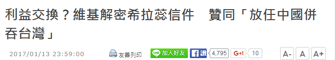 維基解密曝光希拉里電郵:“讓中國大陸吞并臺灣吧!”