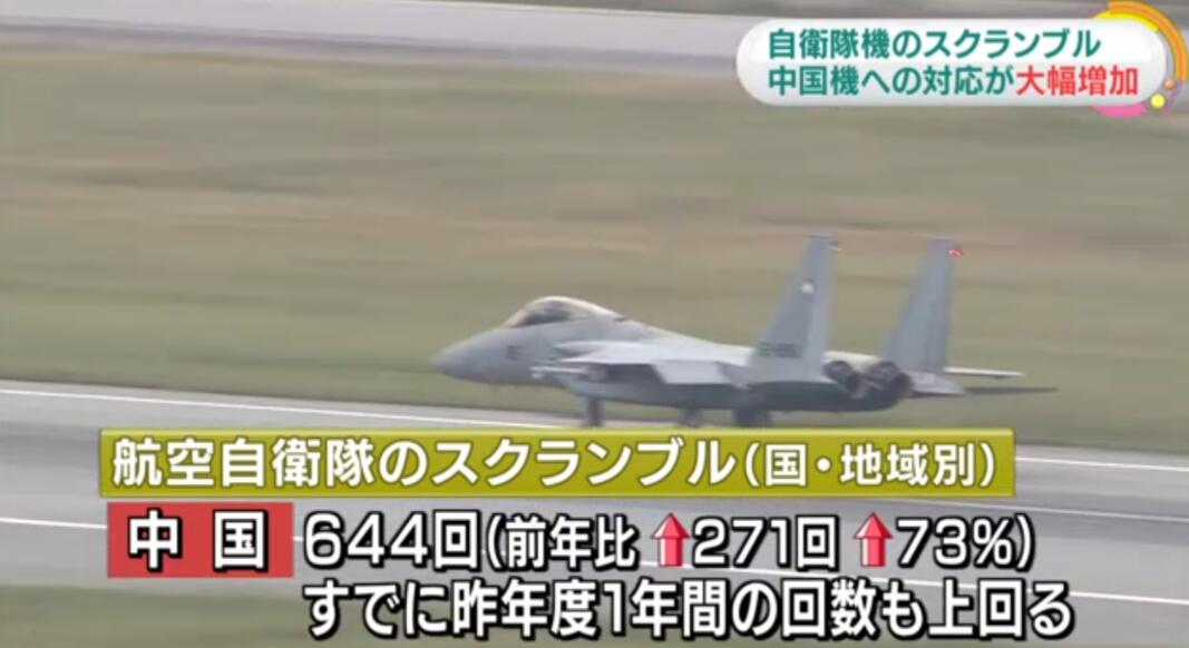 據日本防衛省介紹,2015年度(2015年4月-2016年3月底)自衛隊的緊急起飛次數是873次。而2016年4月開始的9個月期間,緊急起飛次數已經超過這一數字,逼近冷戰時期的1984年創下的最高紀錄(944次)。