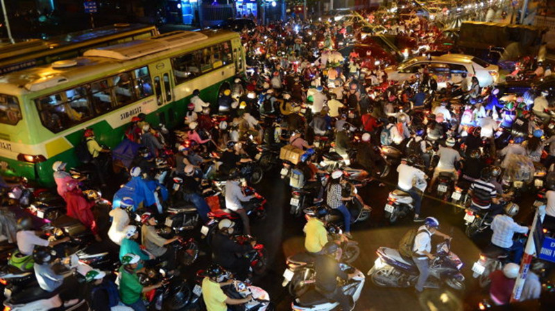 據越南青年新聞網1月21日報道,日前,越南與中國一樣,正式進入了“春運”的高峰時段。在上周五,也就是陰歷23日“小年”,越南首都河內和胡志明市數百萬摩托車與機動車混在在一起,上演了一幕“春運大塞車”。
