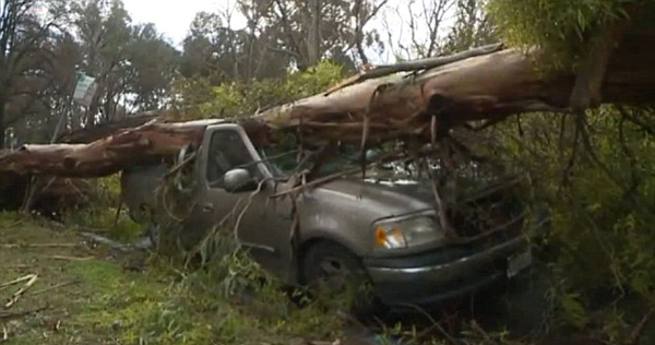 據(jù)英國(guó)《每日郵報(bào)》1月21日?qǐng)?bào)道,近日,美國(guó)加利福尼亞州一名男子同一天內(nèi)兩次險(xiǎn)些遭遇樹劈,但表現(xiàn)超極淡定:“我覺得我很幸運(yùn),這不是什么大事兒”。報(bào)道稱,美國(guó)加利福尼亞州北部近日持續(xù)的暴風(fēng)雨天氣,似乎只是在針對(duì)他一個(gè)人:兩個(gè)城市,兩棵樹,兩輛車,同一個(gè)人。
