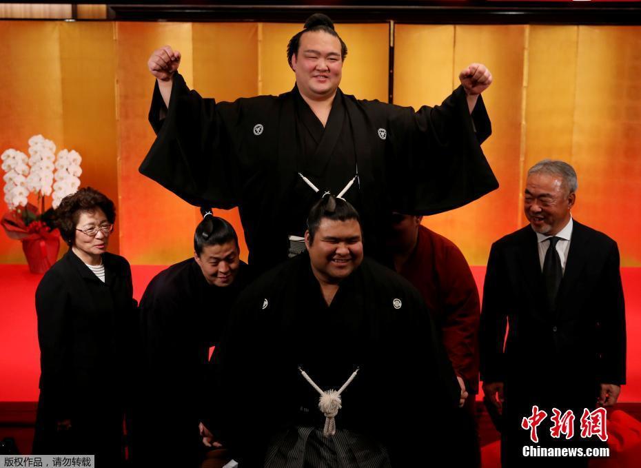 當(dāng)?shù)貢r(shí)間2017年1月25日,日本東京,日本相撲運(yùn)動(dòng)員稀勢(shì)之里出席晉級(jí)儀式,由大關(guān)等級(jí)晉升為最高的橫綱,與上一次日本出生的相撲力士晉升為橫綱相距19年。