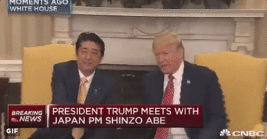 之前特朗普和日本首相安倍晉三握手的一幕就在網(wǎng)上掀起了熱議,除了19秒的“超長(zhǎng)握”以外,特朗普還數(shù)次將安倍拉向自己,感覺(jué)像兩個(gè)人在拔河。可能特朗普覺(jué)得和客人握手就得這樣,不過(guò)看上去略微有些尷尬啊!