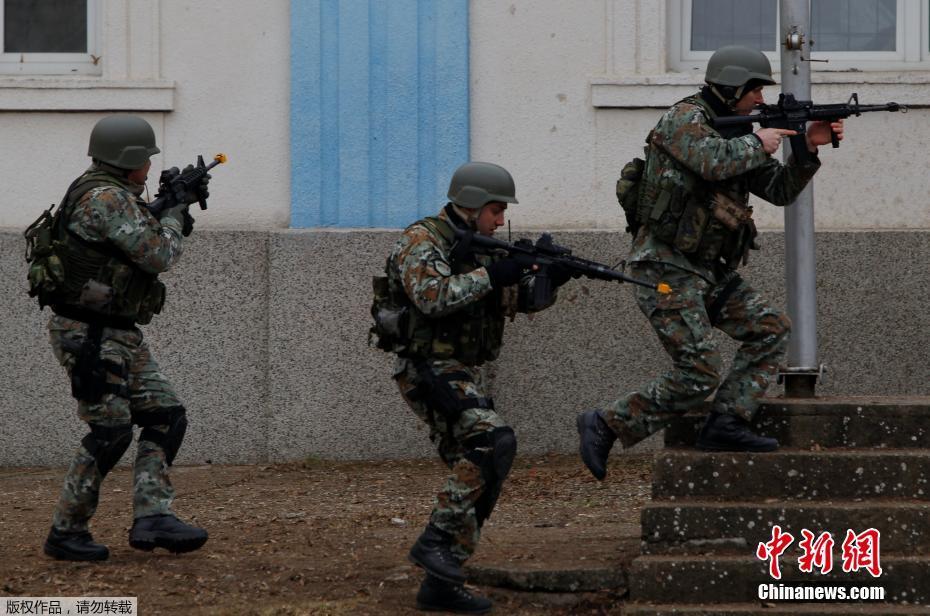 近日,馬其頓陸軍和警察特種部隊士兵在與美國海軍海豹突擊隊進行3個星期的訓練后在斯科普里進行演習,展示他們的訓練成果。