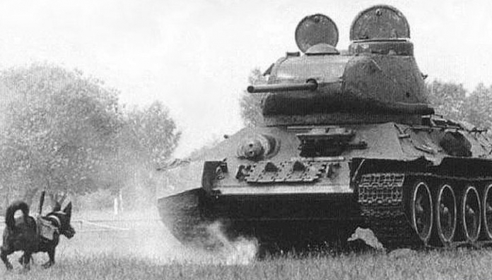 二戰期間,同盟國和軸心國在戰場上共投入25萬條軍犬。這些“勇士”除掉了703座城鎮的地雷,救出了69萬人次負傷官兵。1942年7月,德軍的850輛坦克向斯大林格勒發起總攻。坦克梯隊推進時,只見蘇軍陣地風馳電掣般沖出無數條軍犬,身背炸藥包,毫無畏懼地沖向德軍坦克。一陣陣巨大的爆炸聲中,蘇軍軍犬以自己的血肉之軀與德軍坦克同歸于盡。蘇聯官方宣布,反坦克犬在戰爭中共摧毀了300輛德軍坦克。